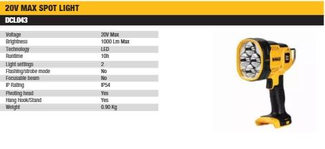 dewalt dcl043, dewalt cordless led spotlight, dewalt 18v led spotlight, dewalt dcl043 cordless light, dewalt xr led spotlight, dewalt portable led spotlight, dewalt jobsite spotlight, dewalt battery spotlight, dewalt led work light, dewalt inspection spotlight, dewalt cordless lighting solution, dewalt 18v xr spotlight, dewalt led spotlight tool only, dewalt industrial led spotlight, distributor in india