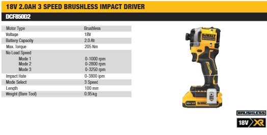 The DCF850D2 DeWalt 3-speed impact driver is designed for professionals who demand power, control, and reliability in daily fastening applications. Built with advanced motor technology, this DeWalt brushless impact driver delivers consistent performance while reducing maintenance requirements and improving tool life.
