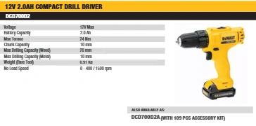 dewalt drill accessory kit, dewalt drill driver, distributor in Chennai, dewalt 12v drill online India, buy dewalt drill driver in India, dewalt 12v drill dealer in chennai, dewalt cordless drill supplier India, dewalt dcd700d2a-b1 12v 2.0ah drill driver, dewalt 12v cordless drill with accessory kit, dewalt compact drill driver for home and DIY, dewalt drill driver with 109-piece accessory kit, 12v lithium-ion dewalt drill driver