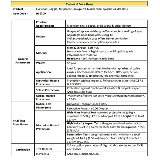 The HSE300 typically meets ANSI Z87.1 standards for splash and impact protection. Trusted by professionals worldwide, these Honeywell splash goggles combine high-quality safety, durability, and comfort for everyday use.