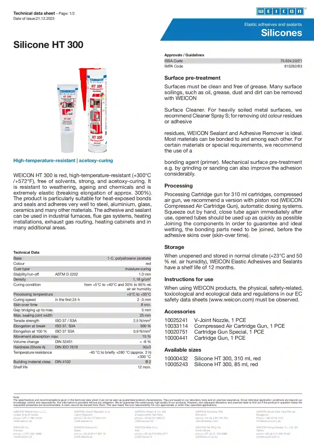 WEICON Silicone HT 300 is a red, high-temperature silicone adhesive designed for demanding industrial applications where extreme heat resistance and durability are essential. This one-component, acetoxy-curing sealant provides outstanding adhesion and flexibility on a wide range of materials including metals, glass, ceramics, and many plastics.