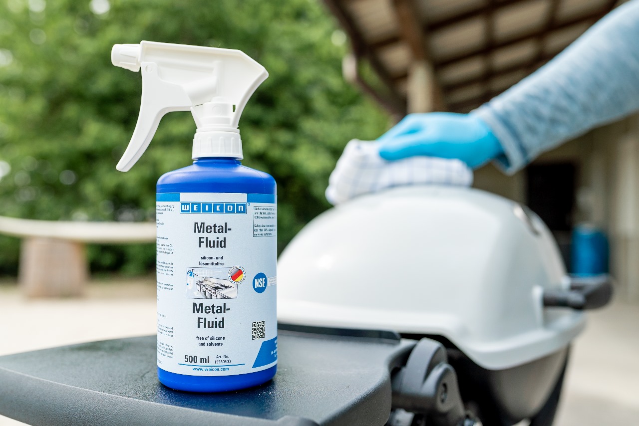 WEICON Metal-Fluid is a care and cleaning product for indoor matt and polished surfaces and has an NSF approval. Metal-Fluid protects, cleans and cares for metal surfaces as well as ceramics, wood, glass and plastics. It does not dissolve etched and printed markings or plastic surfaces and rubber seals.