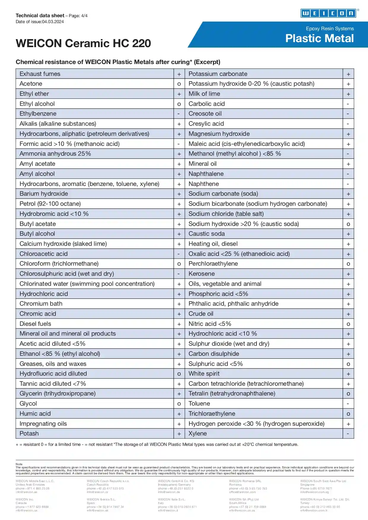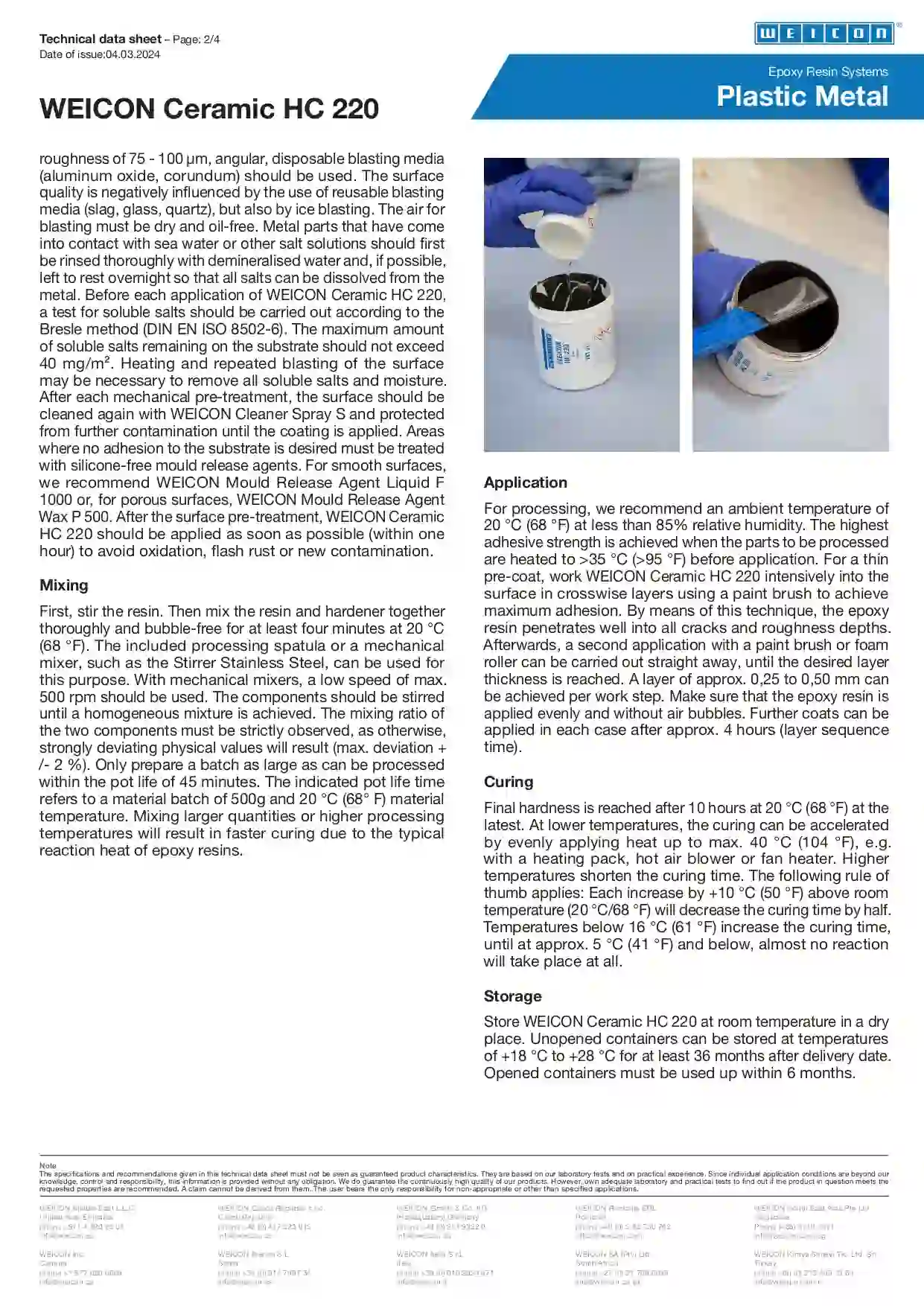 Mix Ratio: As per the WEICON technical data sheet (resin + hardener).