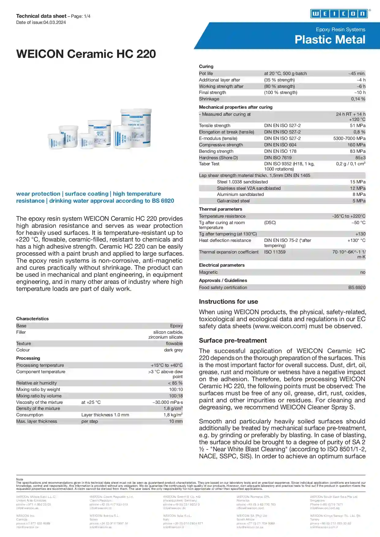 Why Choose SFMKART WEICON Ceramic HC 220 Epoxy Resin