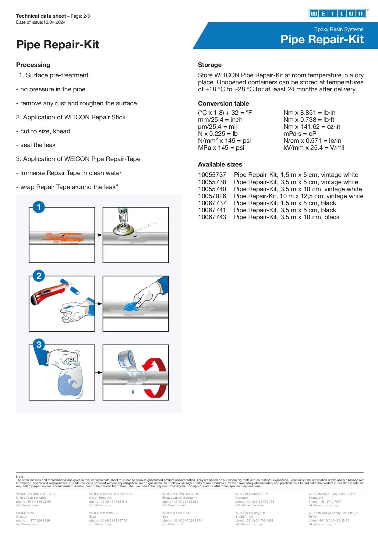 - WEICON Pipe Repair Kit 10-35 for emergency pipe fixes