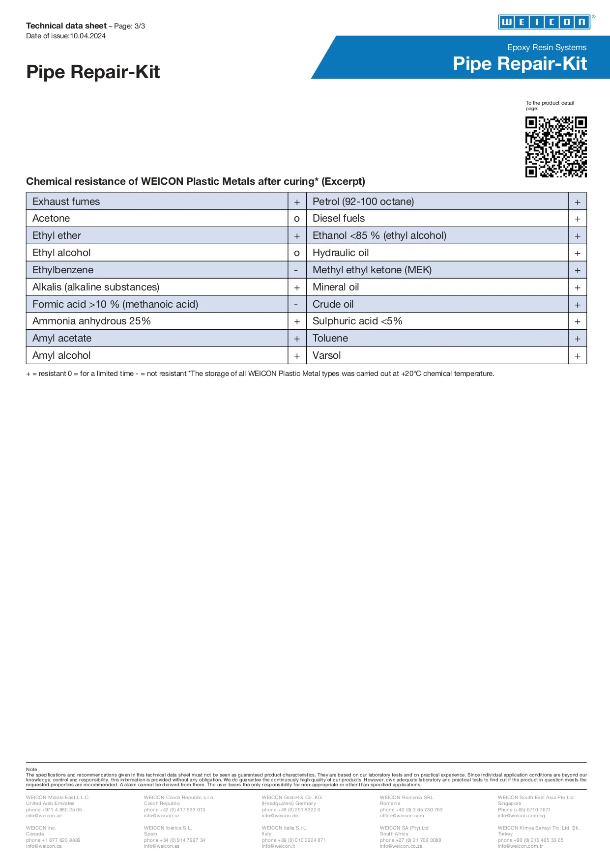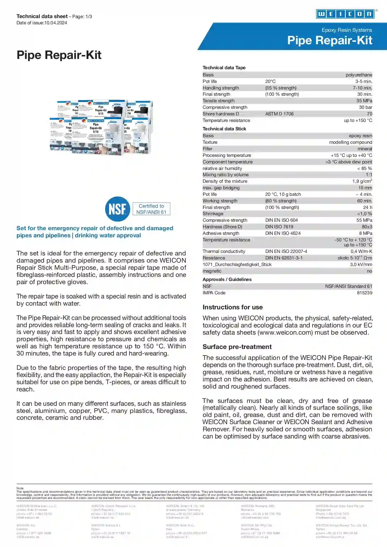 - Weicon Pipe Repair Kit 5-35 is a ready-to-use epoxy repair system for fast, permanent sealing.