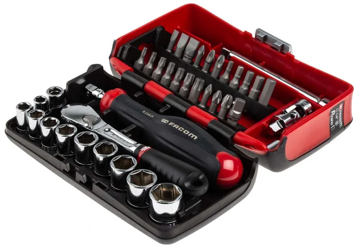 Set Contents : Ratchet, sockets, extensions, joint, bit holder, short screwdriver handle, bits, socket holder bit