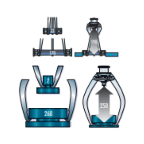 – 2 sets of 3 long legs for outside grip = U.306G10 (spread 10 to 180 mm)